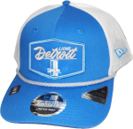 Get ready for the 2024 season with this Detroit Lions New Era NFL24 Sideline Retro 970 Snapback Hat, blue with retro logo and gray DETROIT LIONS on front, gray rope on bill, mesh back, 100% cotton made by New Era