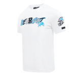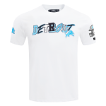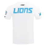 Check out this cool Detroit Lions Pro Standard City Ransom Men's Tee and pair with other City Ransom items, white with blue white and black DETROIT and blue lions logo on chest, blue lions logo on right sleeve, gray helmet on left sleeve, blue LIONS on back, 94/6 cotton/spandex made by Pro Standard