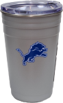 Use this Detroit Lions Logo Brands 22oz Flipside Stainless Tumbler to keep your drinks cold, gray with blue lions logo on one side and bule LIONS on other side, made by Logo Brands