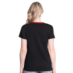 Add this Detroit Red Wings Glll 6J510Z01 DETROIT Woman's Tee to your gameday outfit, black with ref DETROIT and red wings logo on chest, 60/40 cotton/poly made by Glll