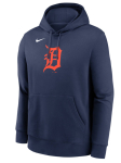 Add this Detroit Tigers Nike MLB Club Men's Hoodie to your outfit, navy with orange D logo on chest, 82/18 cotton/poly made by Nike