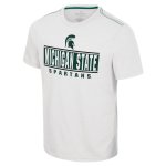 Great for the white out game this MSU Spartans Colosseum No Problemo Men's Tee 52/48 cotton/poly shirt screen printed graphics on front and a small hit on the back made by Colosseum