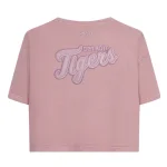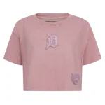 Wear this cute Detroit Tigers Pro Standard Washed Classic Woman's Cropped Tee to the next game and pair with other washed classic items, pink with pink D logo on chest, pink tiger on lower left chest, pink DETROIT TIGERS on back, 100% cotton made by Pro Standard
