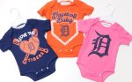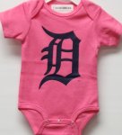 Perfect fit for your littlest fan with this Detroit Tigers Infant Girls Baseball Onesie 3 Styles (see pictures) blue with orange graphics on the front orange with blue and white graphics on the front and pink with a blue English D on the front 100% cotton made by Outerstuff