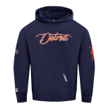 Grab this Detroit Tigers Pro Standard City Signature Men's Hoodie for the next game, navy with an orange D on chest, DETROIT TIGERS on right sleeve, orange DETROIT on back, 100% cotton made by Pro Standard