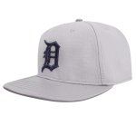 This Detroit Tigers Pro Standard Script Tail Wool Strapback will pair nicely with our other Pro Standard items, gray with navy D on front, DETROIT TIGERS on right side and back, buckle closure, leather bill, 70/30 acrylic/wool made by Pro Standard
