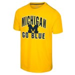 U of M Wolverine's Colosseum Men's Four Barrel Carb Tee all maize with screen printed graphics on the front and back 100% cotton great for game day or any day to show who's your team made by Colosseum