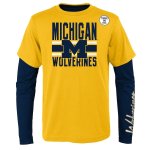 Your child/youth will have 3 wearing options with this U of M Wolverines Gen2 Fan Wave 3-1 Combo Tee Set yellow and blue with printed graphics 100% cotton made by Outerstuff Gen2