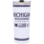 This U of M Wolverines Indigo OHT Flag 24 Oz Tumbler is great to keep drinks cold or hot support your team and the Military at the same time stainless steel inside with powder coat team logos on the outside hand wash made by Indigo Falls